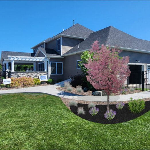 *We created a a design that included mostly spring and summer growing shrubs, with a solid evergreen core that provides structure and interest all year long.