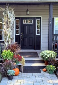 The Standard Porch Decor package from Herbein’s Garden Center offers an elevated fall decorating solution for $490 that transforms your front porch into a stunning seasonal showcase. This enhanced package includes an expanded assortment of premium fall elements like vibrant mums in multiple varieties, a diverse selection of pumpkins and gourds, corn stalks, straw bales, decorative crates, and additional seasonal accents, all expertly designed and arranged by their skilled floral decor artists. The comprehensive service includes full delivery, professional installation, and end-of-season teardown, ensuring a completely hassle-free experience for achieving exceptional autumn curb appeal. Ideal for homeowners who desire a more elaborate and eye-catching seasonal display without the complexity of sourcing and coordinating multiple decorative elements, this package creates a striking entrance that embodies the rich warmth and beauty of fall. Let our floral decor artist build your standard package for elevated seasonal charm and cohesive styling
