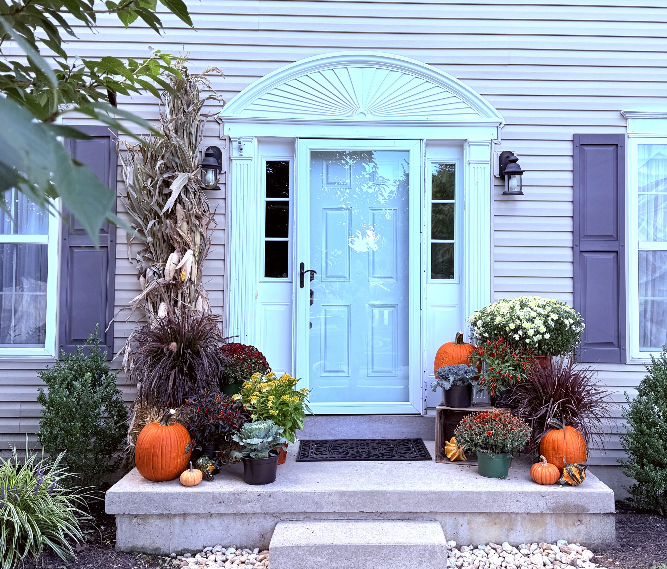The Standard Porch Decor package from Herbein’s Garden Center offers an elevated fall decorating solution for $490 that transforms your front porch into a stunning seasonal showcase. This enhanced package includes an expanded assortment of premium fall elements like vibrant mums in multiple varieties, a diverse selection of pumpkins and gourds, corn stalks, straw bales, decorative crates, and additional seasonal accents, all expertly designed and arranged by their skilled floral decor artists. The comprehensive service includes full delivery, professional installation, and end-of-season teardown, ensuring a completely hassle-free experience for achieving exceptional autumn curb appeal. Ideal for homeowners who desire a more elaborate and eye-catching seasonal display without the complexity of sourcing and coordinating multiple decorative elements, this package creates a striking entrance that embodies the rich warmth and beauty of fall. Let our floral decor artist build your standard package for elevated seasonal charm and cohesive styling